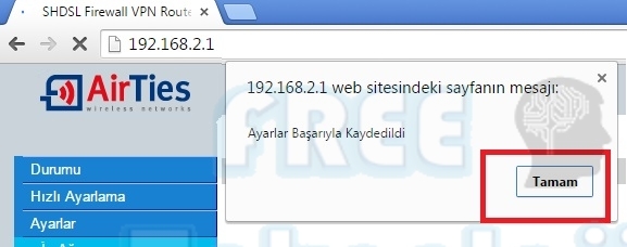 Açılan sayfamızda yapılan ayarlar “Türk Telekom Adsl ayarları” ayarlarında yapıldığı gibi yapılmaktadır. Vpı:8 Vcı:35 seçilir. Kullanıcı adı ve şifre kısmına servis sağlayıcınızın size vermiş olduğu kullanıcı adı ve şifre bilgisini yazıyoruz. En altta bulunan kaydet butonuna basarak ayarlarımızı kaydediyoruz.