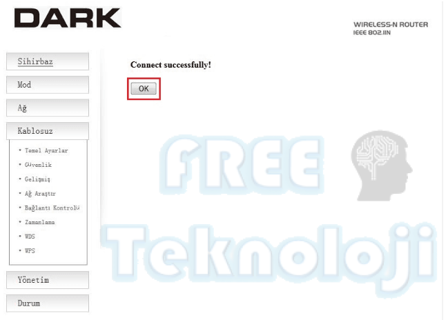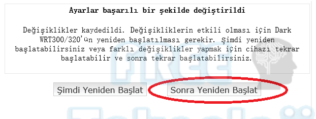 Modemimizin ayarları tamamlandı. Artık kablosuz sinyalimizi DARK WRT300 veya DARK WRT320 cihazları ile kablolu olarak kullanabilir.