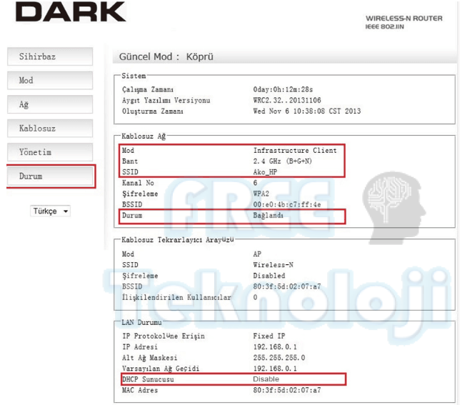 DARK WRT300 Wİ-Fİ ROUTER KURULUMU NASIL YAPILIR? DARK WRT320 Wİ-Fİ ROUTER KURULUMU NASIL YAPILIR? DARK Kablosuz internet bağlantısı nasıl kablolu internet bağlantısına dönüştürülür? DARK Kablolu internet bağlantısı nasıl kablosuz internet bağlantısına dönüştürülür? DARK Kablosuz internet bağlantısı nasıl uzak noktalara kablosuz olarak taşınabilir? (Repeater Mode)
