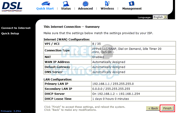 Karşınıza aşağıdaki gibi bir özet ekranı çıkacaktır. Kontrollerinizi yaptıktan sonra Finish butonuna basarak ayarlarınızı kaydediniz.