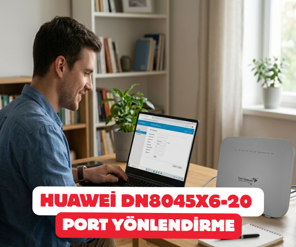 Huawei DN8045X6-20 port yönlendirme, Huawei modem port açma, port forwarding nasıl yapılır, 192.168.1.1 giriş, Huawei modem arayüz şifresi, oyunlar için port açma, kamera sistemi port yönlendirme, TCP UDP port ayarları, IPv4 port mapping, Huawei vdsl modem ayarları, port yönlendirme hatası çözümü, CGNAT port açma sorunu, statik ip atama, Huawei DN8045X6-20 kurulum rehberi.