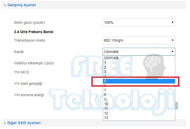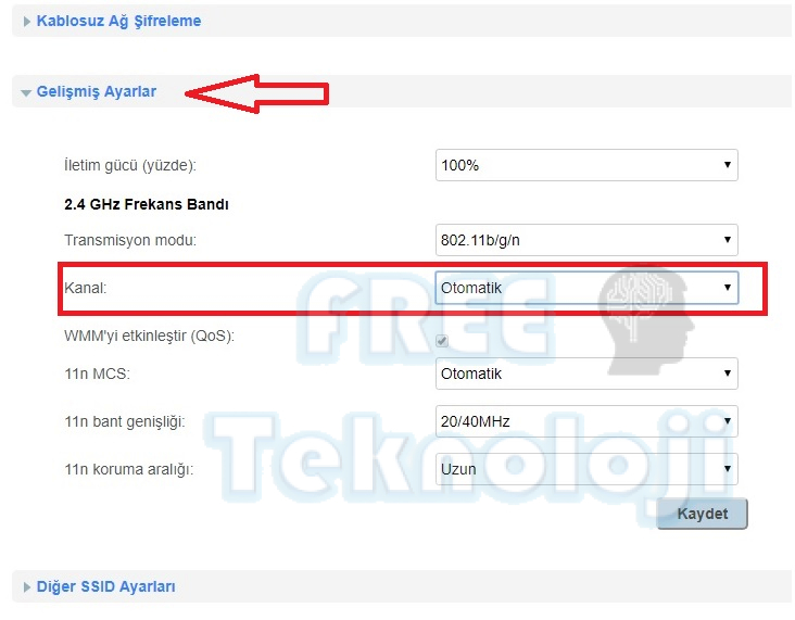 Bu ekranda Kanal bölümü otomatik olarak gelecektir. Fakat kanal modunun otomatik olması nedeni ile bulunduğunuz ortamda yer alan komşularınızın kablosuz sinyalleri ve kablosuz ağa olan uzaklık yada yakınlık gibi durumlar wifi sinyalinizin olumsuz etkilenmesine yol açacaktır. Bu nedenle sizin wifi ihtiyacınıza göre belirleyeceğiniz bir kanal modu ile wifi sinyallinizi çok daha kaliteli şekilde kullanmanız mümkün olacaktır.
