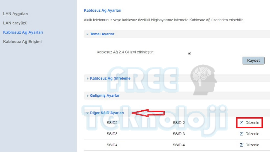 Bu işlem için “Diğer SSID Ayarları” bölümünde Düzenle butonuna basınız.