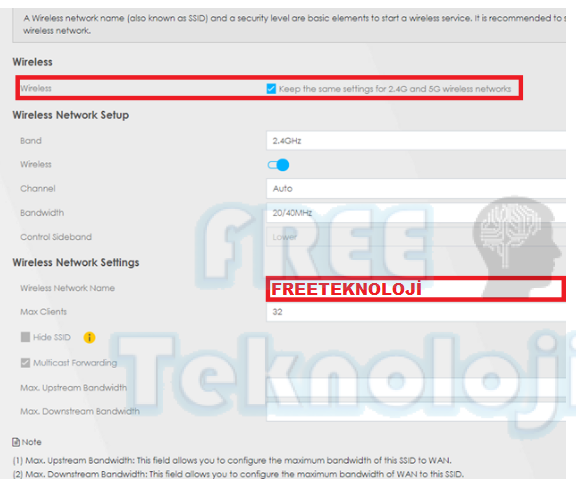 “Keep the same settings for 2.4G and 5G wireless networks “seçeneğinin işaretli olduğuna emin olunuz.
