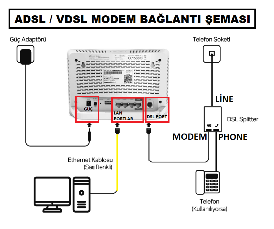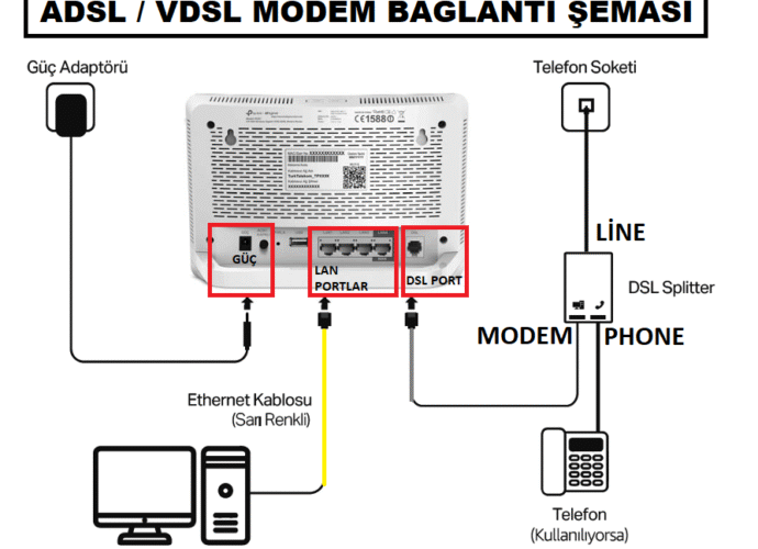 ADSL MODEM BAĞLANTISI NASIL YAPILIR? VDSL MODEM BAĞLANTISI NASIL YAPILIR. MODEM BAĞLANTI ŞEMASI. BİLGİSAYAR MODEM ARASI BAĞLANTI ŞEMASI. MODEM ETHERNET BAĞLANTISI. MODEM SPLİTER BAĞLANTISI NASIL YAPILIR?