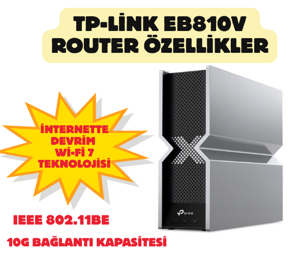 Wi-Fi 7 nedir, EB810v inceleme, BE19000 Tri-Band Router, TP-Link Wi-Fi 7, Turkcell Superonline Wi-Fi 7, en hızlı modem, 10G fiber internet, MLO teknolojisi, düşük pingli oyun modemi, akıllı ev sistemleri, kablosuz internet hızlandırma, 6 GHz bandı, 320 MHz genişlik, 4K-QAM nedir, EasyMesh kurulumu, VoIP router özellikleri, güvenli internet WPA3, Aginet uygulaması, en iyi ev routerı 2026, yeni nesil internet teknolojileri.